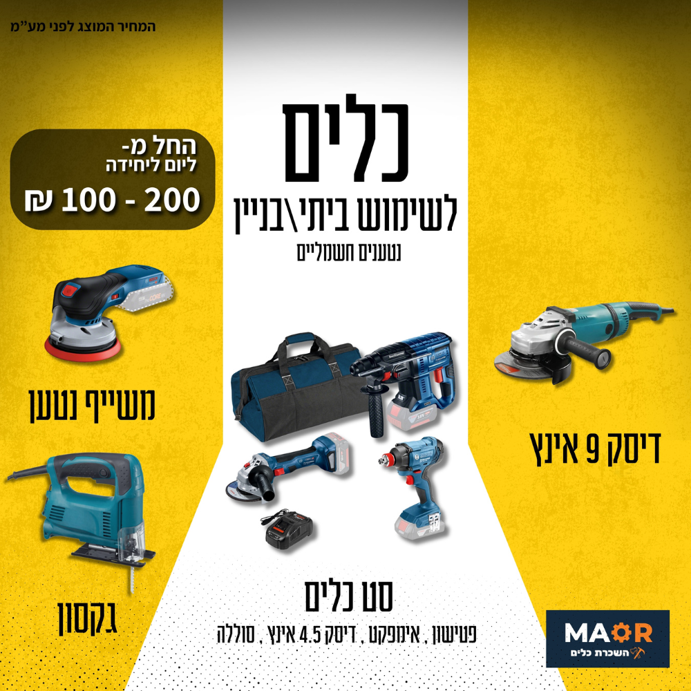 "במאור השכרת ציוד טכני" תוכל להשכיר כל כלי עבודה שאתה צריך: